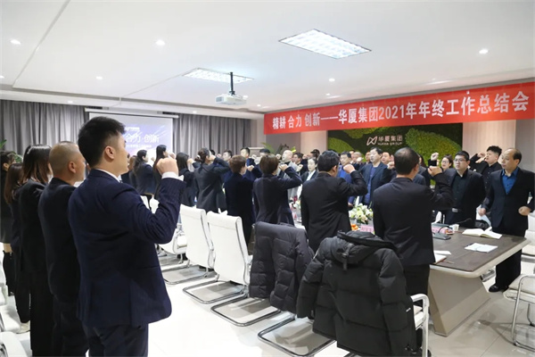 1月20日,以“精耕、合力、创新”为主题的华厦集团2021年年终工作总结会在华厦集团会议室召开。本次大会旨在回顾2021年——华厦·耕心年的工作,总结经验、分享心得,更是对2022年的工作开展做出计划部署,增添动力,以推动公司各版块工作再上新台阶。集团董事长张宝祥,集团总裁张羽,集团总经理姚明霞,地产公司总经理刘文娟,集团常务副总王苗等领导,以及各部门及子公司中高层和员工代表参加了此次会议,会议在集团总裁张羽的主持下进行。